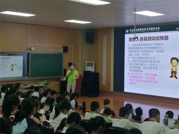 為了讓學(xué)生了解結(jié)核病的傳染途徑和預(yù)防方法,養(yǎng)成良好的衛(wèi)生習(xí)慣,2021年3月26日,社區(qū)服務(wù)中心的志愿醫(yī)生為曹二小學(xué)六年級(jí)學(xué)生上了一堂“預(yù)防肺結(jié)核”的知識(shí)宣講課。
