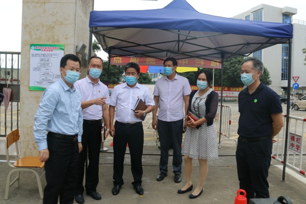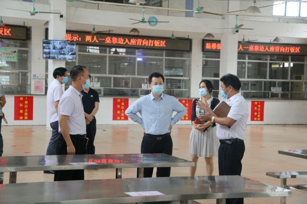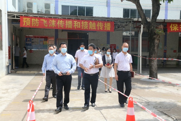 4月29日上午,中山市委常委、宣傳部部長林銳熙在市教育和體育局人事科科長雷澤洪的陪同下蒞臨橫欄中學檢查指導學生返校復學工作。