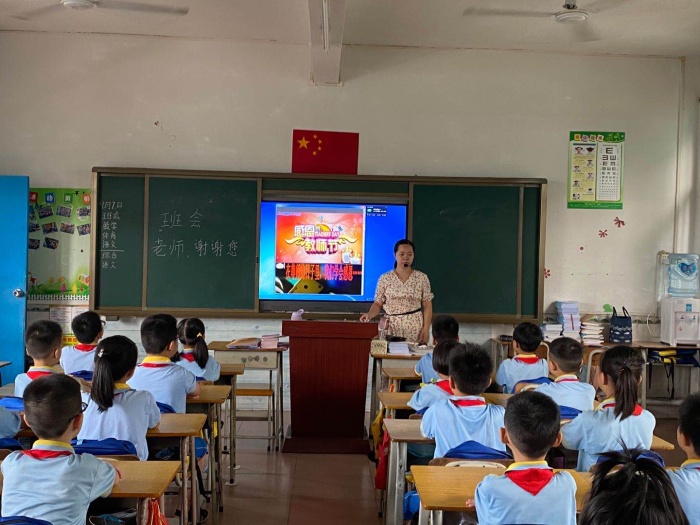 隨后,學(xué)校教師代表賈如意副校長和學(xué)生代表六(4)班劉啟程同學(xué)進(jìn)行了慶祝教師節(jié)國旗下講話,開啟了“金秋九月頌師恩”活動。賈校長講到教師一生平凡卻甘于平凡,一世艱辛卻樂于奉獻(xiàn),他們是文明的使者,是辛勤的園丁;并號召全體同學(xué)弘揚(yáng)尊師重教、感念師恩的美德,在全班、全校、全社會營造人人尊師愛師的良好氛圍,從身邊點(diǎn)點(diǎn)滴滴做起,熱愛老師、關(guān)心老師、尊敬老師,并祝所有教師節(jié)日快樂、工作順利。劉啟程同學(xué)表示飲其流者懷其源,學(xué)有成時念吾師;老師詮釋著愛與奉獻(xiàn),用粉筆詮釋著教書育人的道路,而學(xué)生們則用心詮釋著對老師的尊敬和感恩。最后,各班主任在班上開展了主題班會,通過精美的圖片、溫情的講解讓學(xué)生再一次感受這個平凡而又偉大的職業(yè)——教師。學(xué)生們紛紛表示“一日為師,終身為父”,要時刻牢記老師教誨,在校做一名優(yōu)秀的小學(xué)生,在家做一名聽話的好孩子。
