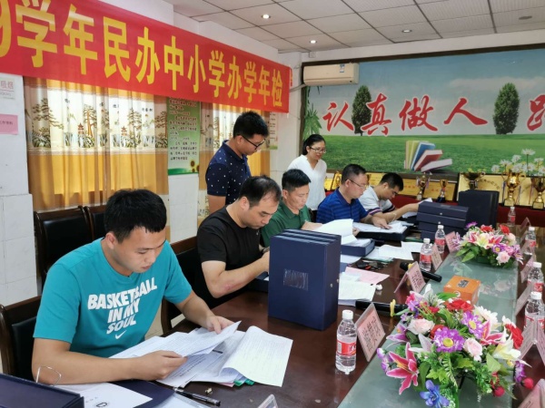 為促進民辦學(xué)校依法辦學(xué),不斷改善辦學(xué)條件,全面提高教育教學(xué)質(zhì)量,促進民辦學(xué)校健康發(fā)展,2020年7月10日上午,橫欄鎮(zhèn)教育事務(wù)指導(dǎo)中心黃軼鹍、楊慧才兩位專干帶領(lǐng)鎮(zhèn)其他學(xué)校行政一行6人,到華文學(xué)校進行2019年中山市民辦中小學(xué)年檢評估工作。謝春生校長帶領(lǐng)全體行政迎接本次評估檢查。