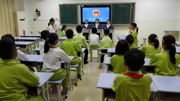 憲法宣傳周期間,學(xué)校舉行了憲法宣傳教育啟動儀式,召開全體教師動員大會,要求全體教師從思想上高度重視憲法知識的普及和宣傳,做好學(xué)生學(xué)法、知法、守法、護法的帶頭人。學(xué)校利用集會、黑板報和LED電子屏等途徑積極宣傳憲法知識,營造了濃郁的法治宣傳氛圍,打造法治校園環(huán)境。學(xué)校還依托《道德與法治》等相關(guān)課程,著力加強體驗式實踐式教學(xué),切實提升憲法教育的針對性和實效性;學(xué)校在高年級開展了模擬法庭活動,進一步推動了憲法教育,著力培育了學(xué)習(xí)憲法、尊崇憲法的校園法治文化;同學(xué)們回家和爸爸媽媽一起進行“學(xué)憲法講憲法”網(wǎng)上學(xué)習(xí)活動,讓憲法走進千家萬戶,提高全民的法制意識。