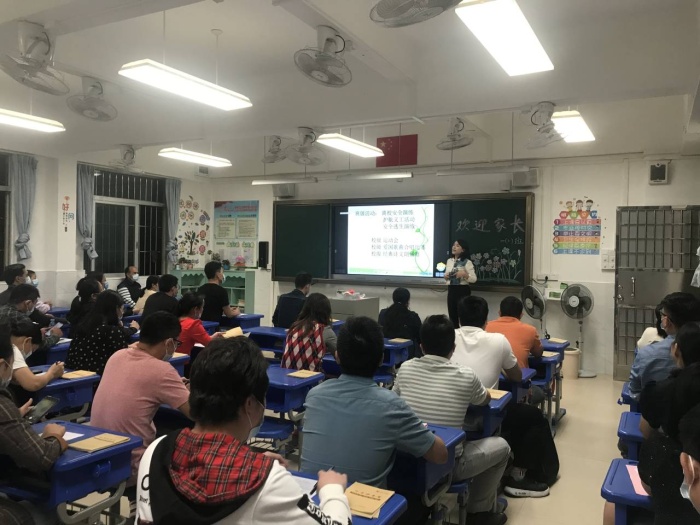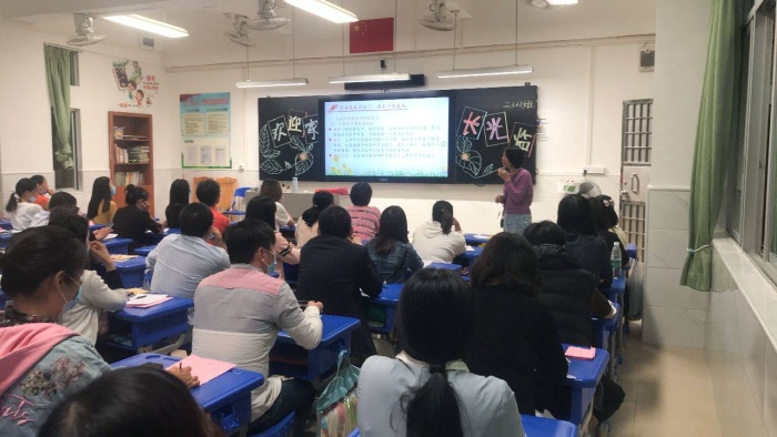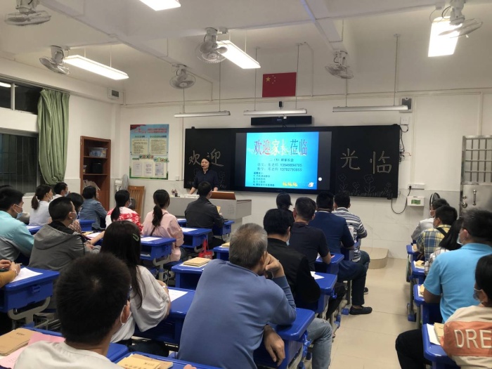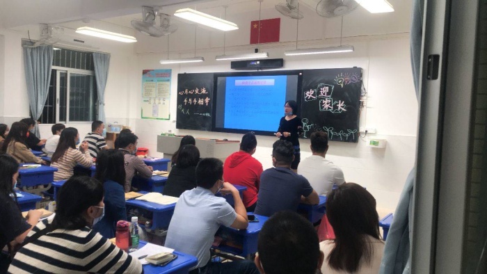 由于疫情原因,家長會在各班教室召開。雖然家長會正式開始的時間是7點,但很多家長六點半不到已經(jīng)迫不及待地進入教室,跟班主任進行交流溝通,了解孩子情況。