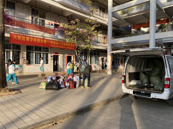 活動當(dāng)天,二中學(xué)子們紛紛帶上大包小包衣服,在校道指定的地點進行捐贈,隨后,相關(guān)回收的工作人員也在一旁協(xié)助將一袋袋舊衣物進行打包回收。這些物品將在統(tǒng)一整理后,通過快遞發(fā)送至相關(guān)公益組織,將火炬二中學(xué)子們的溫暖送達出去,愛心傳遞下去。