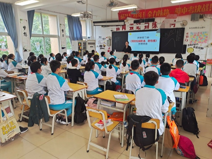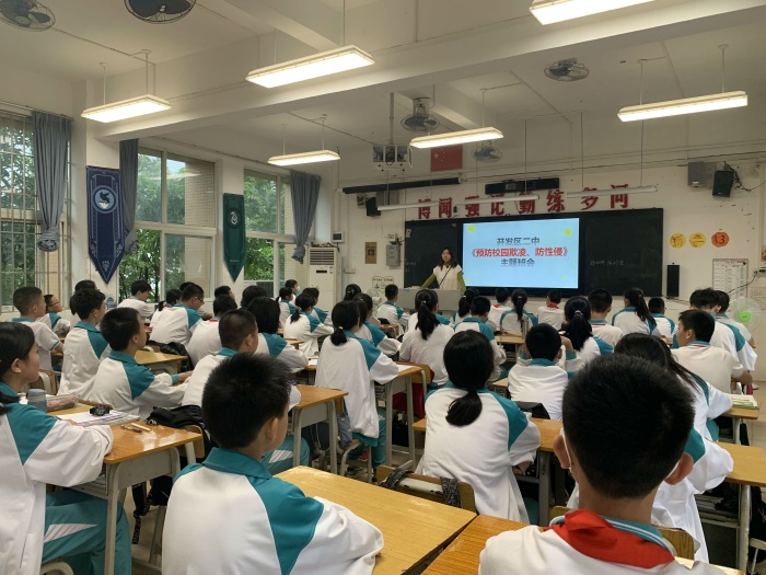 校園欺凌是家長(zhǎng)擔(dān)心、社會(huì)關(guān)注的問(wèn)題,尤其對(duì)于初中生成長(zhǎng)的特殊時(shí)期,校園安全無(wú)小事,此次校園預(yù)防欺凌專題教育活動(dòng),進(jìn)一步提高了在校學(xué)生的守法意識(shí)和自我保護(hù)意識(shí)、增強(qiáng)“反校園欺凌”意識(shí),有效指導(dǎo)了學(xué)生如何預(yù)防校園欺凌事件和保護(hù)個(gè)人的權(quán)益不受侵犯。今后,火炬二中在學(xué)習(xí)和生活中將對(duì)學(xué)生教育多措并舉,積極引導(dǎo)學(xué)生樹(shù)立正確的人生觀價(jià)值觀,把預(yù)防校園欺凌教育工作長(zhǎng)期堅(jiān)持下去。