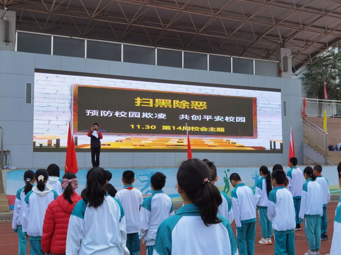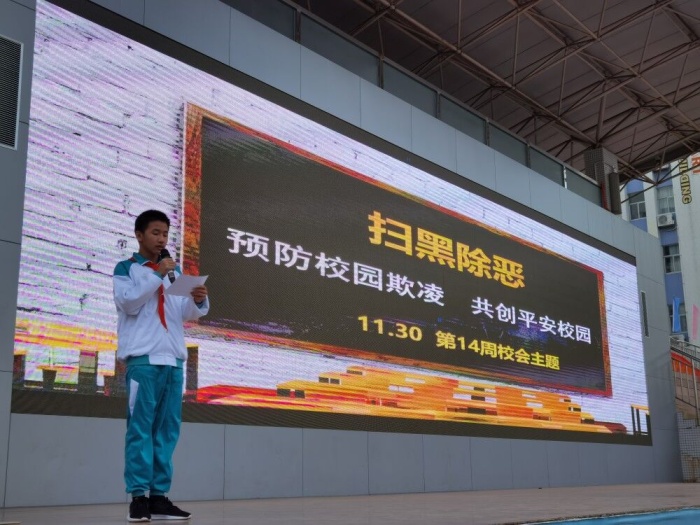 為深入貫徹十九大精神,切實(shí)保護(hù)學(xué)校全體師生的合法權(quán)益,維護(hù)校園的安全穩(wěn)定,杜絕校園黑勢(shì)力和欺凌現(xiàn)象的發(fā)生,11月30日上午,火炬二中面向全校師生開展了一次“掃黑除惡進(jìn)校園,平安與我共成長(zhǎng)”主題校會(huì)。