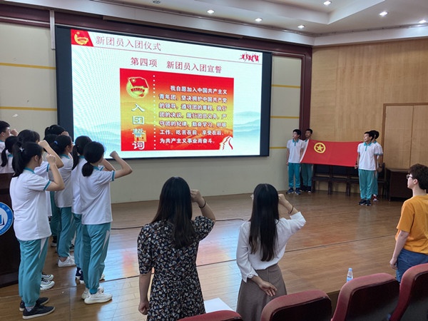 在響亮的國歌聲中拉開了入團(tuán)儀式的帷幕,學(xué)校團(tuán)委書記葉大貴宣布新團(tuán)員名單,校團(tuán)員教師、老團(tuán)員為新團(tuán)員佩戴團(tuán)徽,頒發(fā)團(tuán)章,每個團(tuán)員從佩戴上團(tuán)徽的這一刻起,就要認(rèn)清自己肩負(fù)的責(zé)任,努力履行團(tuán)員的義務(wù),用實(shí)際行動來表明自己無悔于“共青團(tuán)員”這個光榮的稱號。團(tuán)旗下嚴(yán)肅、莊嚴(yán)的入團(tuán)宣誓讓新團(tuán)員將入團(tuán)誓詞牢記在心,并以此激勵自己作為一名共青團(tuán)員的榮譽(yù)感和責(zé)任感。隨后入團(tuán)介紹人代表黃濤同學(xué)宣讀團(tuán)員的權(quán)利和義務(wù),新團(tuán)員代表?xiàng)钛沛猛瑢W(xué)發(fā)言:作為一名中學(xué)生能積極申請入團(tuán)并被批準(zhǔn)入團(tuán),感到非常的光榮,今后將會繼續(xù)努力,造就成為社會的有用之材,老團(tuán)員代表李韻兒同學(xué)更是對新加入的團(tuán)員提出了寄望,希望大家時刻牢記今天的入團(tuán)宣誓,嚴(yán)格要求自己,在學(xué)校里好好學(xué)習(xí),積極向上,爭做老師的好幫手,同學(xué)的好榜樣。