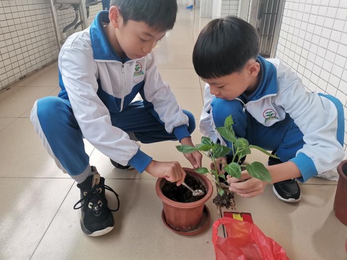校園內(nèi),各中隊在教室里開辟出“綠意角”,用來放置綠色小植物。綠意角一出現(xiàn),同學(xué)們激動萬分,紛紛從家中帶來小植物,給綠植貼上標(biāo)簽,還附上了植物的簡單介紹。在隊員們的巧手裝扮下,教室成了植物棲居的家園,生機(jī)盎然,綠意無限。