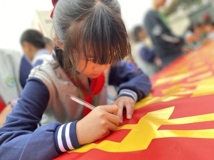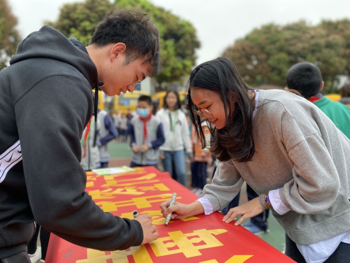 宣誓束后,各班主任老師帶領(lǐng)5位同學進行簽名留念。