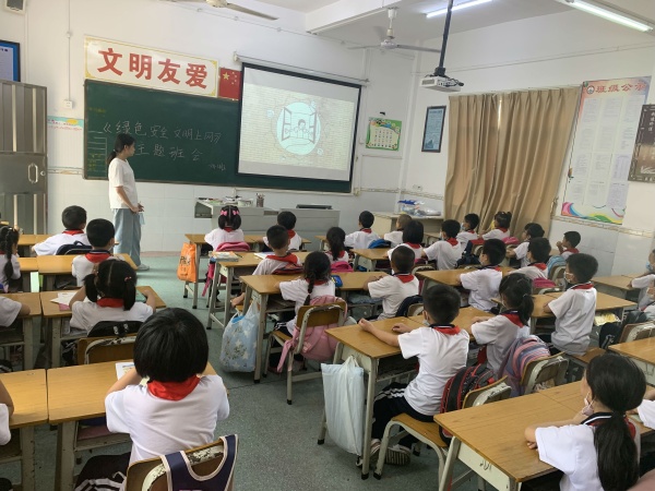 隨著社會的發(fā)展,科技的進步,電子產品已走進千家萬戶。為了讓學生知道怎樣正確對待網絡,做到上網有益。中山市南朗旗風學校于7月7日下午開展全?!毒G色、安全、文明上網》的主題班會教育活動。