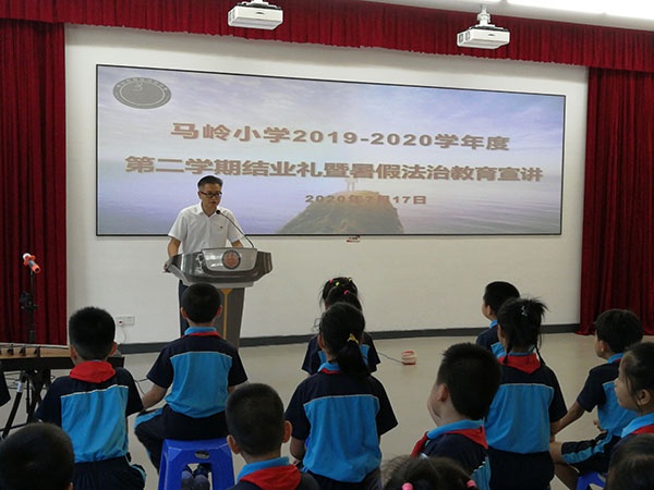 7月17日上午,南區(qū)馬嶺小學舉行了2019-2020學年度第二學期散學禮暨暑假法制教育宣講活動。