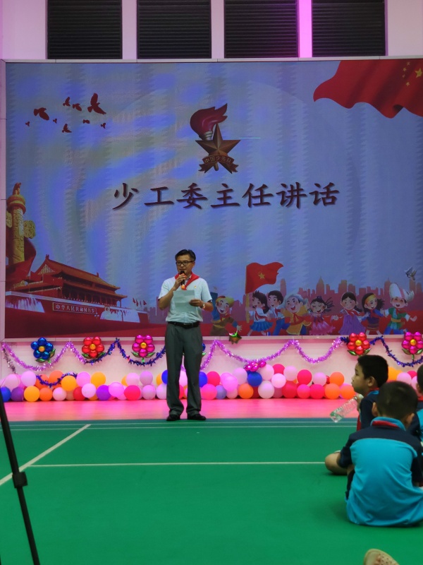上午10點,全校師生在體育館開展“迎接少代會、爭做好隊員”“六一”主題教育活動。活動中,隊員們匯報了“廣東紅領(lǐng)巾致敬逆行先鋒”活動成果,有的隊員表演了《預(yù)防病毒拍手歌》,有的隊員展示了“同心戰(zhàn)疫”繪畫作品,接著進行了最激動人心的“抗疫小衛(wèi)士章” 頒章活動以及同學(xué)們期待已久的“六一”文藝匯演。