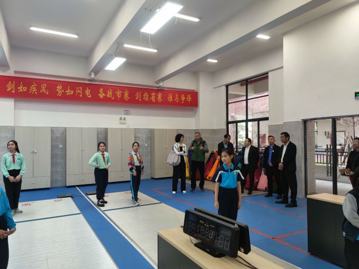 2021年3月2日下午,廣東省擊劍管理中心主任胡順興、廣東省擊劍管理中心女子重劍主教練譚志輝、廣東省擊劍協(xié)會主席徐紅飛、廣東省擊劍協(xié)會副秘書長朱聯(lián)勝組成的專家組在中山市體校擊劍總教練楊文俐、南區(qū)街道教育和體育事務中心梁志東主任的陪同下,蒞臨南區(qū)竹秀園中心小學指導工作。