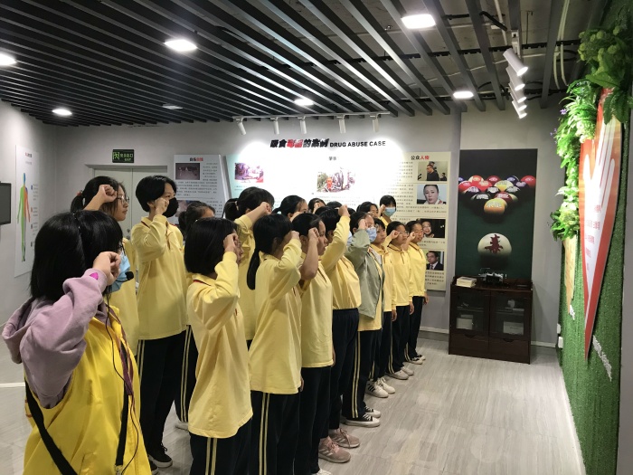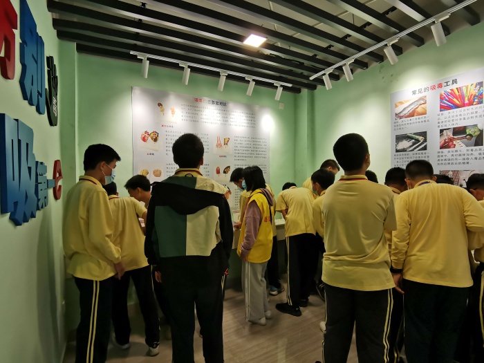 參觀過(guò)程中,講解員分別從毒情形勢(shì)、毒品樣品展示、禁毒法律法規(guī)、禁毒史實(shí)和打擊毒品違法犯罪成果進(jìn)行了詳細(xì)的講述。面對(duì)著一幅幅圖片資料和實(shí)物展示,同學(xué)們?nèi)轿?、多角度地了解了禁毒歷史和毒情形勢(shì),對(duì)毒品的危害性和禁毒的必要性有了更為全面的認(rèn)識(shí)。除了認(rèn)真聽(tīng)取教育基地工作人員的解說(shuō)、觀看圖片、實(shí)物、視頻,同學(xué)們還積極參與禁毒知識(shí)搶答,對(duì)毒品的性質(zhì)、種類、危害以及南區(qū)近年來(lái)的禁毒成果有了更深的了解與認(rèn)識(shí),進(jìn)一步意識(shí)到保持積極健康的生活方式、提高防毒意識(shí)、增強(qiáng)防毒能力的重要性,尤其對(duì)新型毒品和濫用止咳水給青少年帶來(lái)的危害有了更深的體會(huì)。