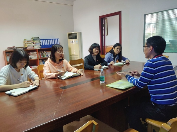 梁炳華校長(zhǎng)以“學(xué)校匯報(bào)、實(shí)地查看、檢查反饋”的形式開(kāi)展督導(dǎo)檢查工作。首先,梁校長(zhǎng)分別從“疫情防控”、“教育教學(xué)”以及“德育工作”等幾方面聽(tīng)取了學(xué)校行政的工作匯報(bào),全方位深入了解了學(xué)校在疫情防控、教師隊(duì)伍建設(shè)、教育教學(xué)管理、德育工作開(kāi)展等方面的工作開(kāi)展情況。在教育教學(xué)方面,梁校長(zhǎng)指出,教學(xué)質(zhì)量是學(xué)校的生命線,是學(xué)校生存和發(fā)展的希望。針對(duì)學(xué)校目前存在的問(wèn)題與不足,他對(duì)學(xué)校今后的教育教學(xué)工作提出了殷切的希望,抓重點(diǎn)進(jìn)行精準(zhǔn)發(fā)力、各項(xiàng)措施落實(shí)處,定會(huì)讓學(xué)校開(kāi)創(chuàng)出一個(gè)嶄新格局。