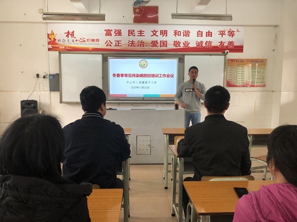 為進(jìn)一步貫徹落實(shí)冬春季傳染病防控要求,加強(qiáng)冬春季傳染病預(yù)防工作,12月25日中午,三角鎮(zhèn)高平小學(xué)在學(xué)校二樓綜合室召開(kāi)冬春季傳染病防控工作培訓(xùn)會(huì)在。本次會(huì)議由黃滿華校長(zhǎng)主持,全體教師參與。