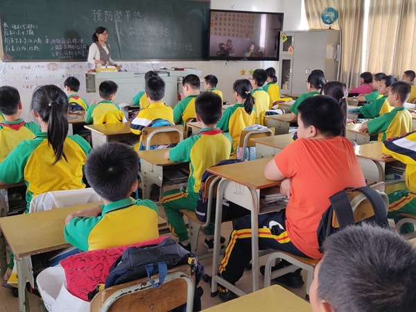 班會課上,班主任利用多媒體課件,通過展示圖片與文字、播放視頻,創(chuàng)設(shè)情境與學(xué)生互動交流、競答等多種方式,向同學(xué)們詳細(xì)講解了“什么是登革熱”,“怎么預(yù)防登革熱”等基本知識。重點(diǎn)教會同學(xué)們要注意個人衛(wèi)生,野外活動時要噴灑防蚊驅(qū)蚊藥,預(yù)防蚊子叮咬;身體出現(xiàn)不舒服要馬上告訴家長、老師等等。