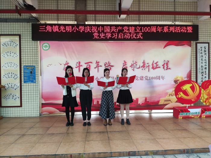 最后,還通過學生代表合唱、救人英雄講黨史、教師代表誦讀和師生大合唱等形式深情回顧黨的奮斗歷史,熱情謳歌黨的光輝業(yè)績,激發(fā)學生的歷史責任感,努力成長,成為民族復興的新時代好少年。