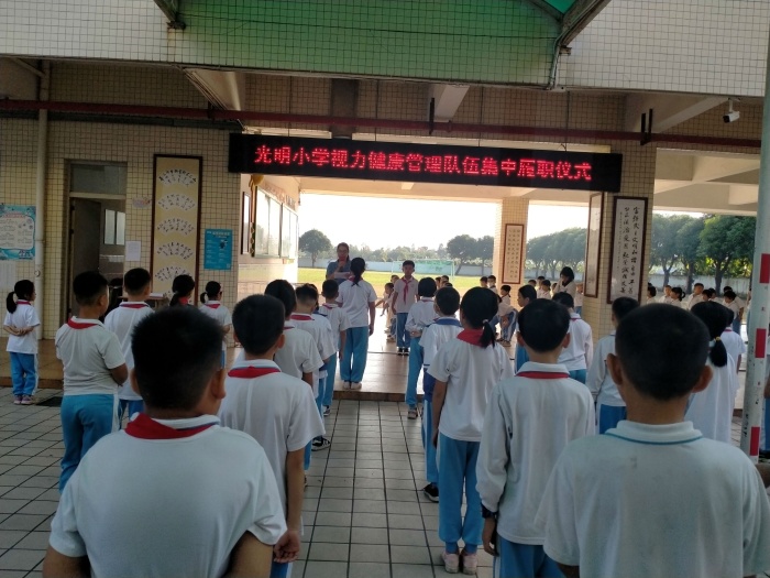 兒童是祖國的未來,眼睛是心靈的窗戶,保護(hù)眼睛應(yīng)當(dāng)從小做起。為進(jìn)一步培養(yǎng)學(xué)生良好的用眼護(hù)眼習(xí)慣,三角鎮(zhèn)光明小學(xué)制定了預(yù)防近視工作實(shí)施方案,組建了學(xué)生視力健康管理隊(duì)伍,并于10月12日上午,舉行學(xué)生視力健康管理隊(duì)伍集中履職儀式。