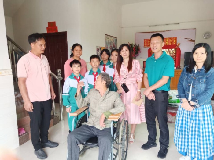 重陽(yáng)節(jié)作為中華傳統(tǒng)節(jié)日之一,是國(guó)人樹(shù)立尊老、敬老、愛(ài)老、助老風(fēng)氣的重要體現(xiàn)。在重陽(yáng)節(jié)來(lái)臨之際,為弘揚(yáng)中華民族尊老愛(ài)老的優(yōu)良美德,讓退休老教師度過(guò)一個(gè)溫馨愉快的重陽(yáng)節(jié),10月23日下午,沙欄小學(xué)黨群服務(wù)隊(duì)組織少先隊(duì)員開(kāi)展走訪慰問(wèn)退休老教師活動(dòng),為退休老教師們送去了重陽(yáng)佳節(jié)的美好祝福。