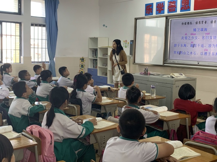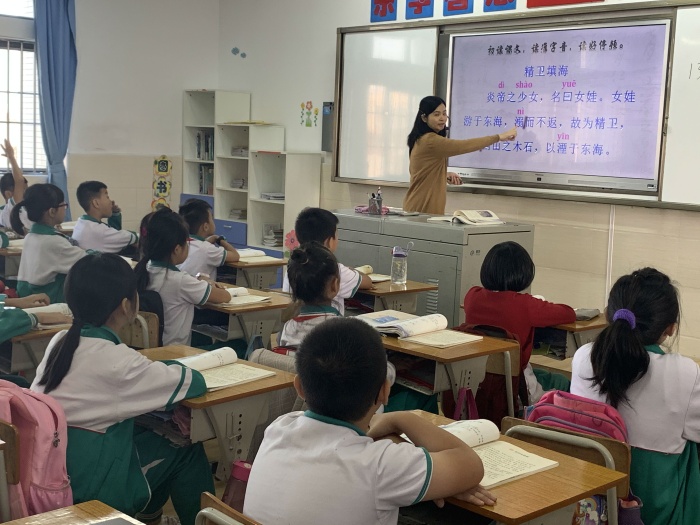 本次骨干教師示范課活動(dòng)是余燕老師執(zhí)教,內(nèi)容是四年級(jí)語文上冊(cè)《精衛(wèi)填?!?。在本節(jié)課中,余老師教學(xué)流程環(huán)環(huán)相扣、教學(xué)技巧嫻熟自然、課堂氣氛和諧融洽,充分展現(xiàn)出語文課堂的精彩,使聽課教師們從中得到了很好的啟示,紛紛表示受益匪淺。在教學(xué)片段中,余老師引導(dǎo)學(xué)生充分利用注釋及生活經(jīng)驗(yàn),引導(dǎo)學(xué)生通過聯(lián)系上下文理解文言文,并引導(dǎo)學(xué)生在感悟神話故事的神奇性過程中,通過對(duì)課文內(nèi)容的解讀,從而發(fā)現(xiàn)神話故事的特點(diǎn)——神奇。