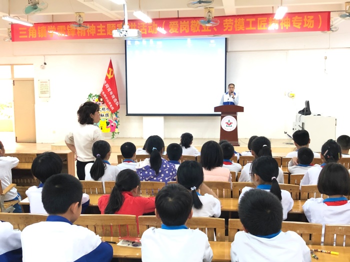 “人的生命是有限,為人民服務(wù)是無(wú)限的。我要把有限的生命投入到無(wú)限的為人民服務(wù)當(dāng)中去?!崩卒h同志是新中國(guó)成立后勞模工匠的杰出代表人物,他的事跡和精神影響著一代又一代的中國(guó)人。3月是學(xué)雷鋒紀(jì)念月,為弘揚(yáng)雷鋒熱愛黨、熱愛祖國(guó)、熱愛社會(huì)主義的崇高理想和堅(jiān)定信念,服務(wù)人民、助人為樂(lè)的奉獻(xiàn)精神,讓廣大學(xué)子感受當(dāng)代新雷鋒愛崗敬業(yè)、勞模工匠精神及榜樣的力量,三角小學(xué)特邀請(qǐng)三角鎮(zhèn)社會(huì)衛(wèi)生服務(wù)中心的公衛(wèi)醫(yī)師李嘉麟和中山市三角鎮(zhèn)供電分局綜合部主任李亮棠兩位“中山好人”代表到校為師生們開展愛崗敬業(yè)、勞模工匠專場(chǎng)教育活動(dòng)。