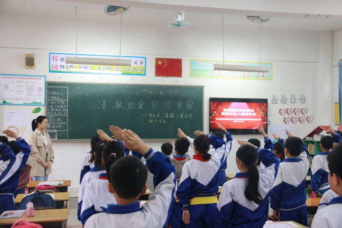 3月1日,三角小學(xué)全體師生在教室內(nèi)進(jìn)行升旗儀式。少先隊員們佩戴著鮮艷的紅領(lǐng)巾,精神抖擻地注視著莊嚴(yán)的國旗。六(1)中隊殷銘濤同學(xué)以“學(xué)習(xí)雷鋒好榜樣”為主題進(jìn)行國旗下講話。他代表三角小學(xué)少先隊大隊部,向全校隊員發(fā)出學(xué)習(xí)雷鋒的倡議,號召大家以雷鋒為榜樣,踐行雷鋒精神:在班級事務(wù)中,不計較個人得失,不拈輕怕重;在學(xué)習(xí)生活中,熱心幫助身邊有困難有需要的人;要自覺遵守學(xué)校的規(guī)章制度,養(yǎng)成良好的行為習(xí)慣;要爭當(dāng)勤奮好學(xué)、勇于創(chuàng)新的好學(xué)生,積極參與學(xué)雷鋒主題系列活動。