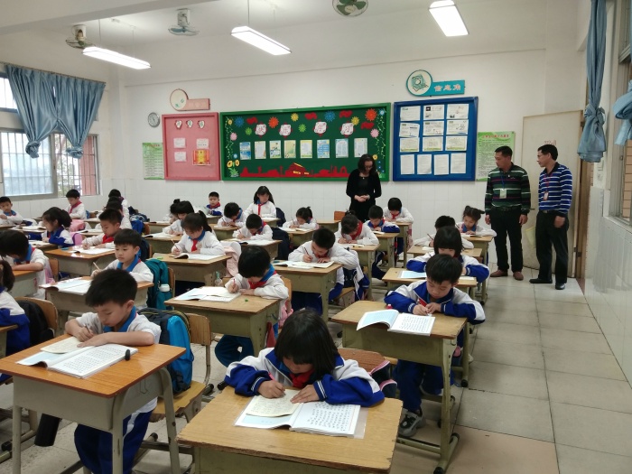 梁炳華校長(zhǎng)在三角小學(xué)陳見(jiàn)洪校長(zhǎng)的陪同下,巡視了校園,聽(tīng)取了陳校長(zhǎng)針對(duì)學(xué)校開(kāi)學(xué)工作所做的匯報(bào),并對(duì)學(xué)校的整體情況、疫情防控工作、校園安全工作、學(xué)校教育教學(xué)常規(guī)工作等情況進(jìn)行了全方位了解。針對(duì)教學(xué)質(zhì)量提升的細(xì)節(jié)問(wèn)題,梁校長(zhǎng)還與教導(dǎo)處陳寶瑩主任進(jìn)行了詳細(xì)交流。隨后,梁校長(zhǎng)深入班級(jí),對(duì)教室環(huán)境、班級(jí)文化布置、學(xué)生上課狀態(tài)等進(jìn)行了檢查。
