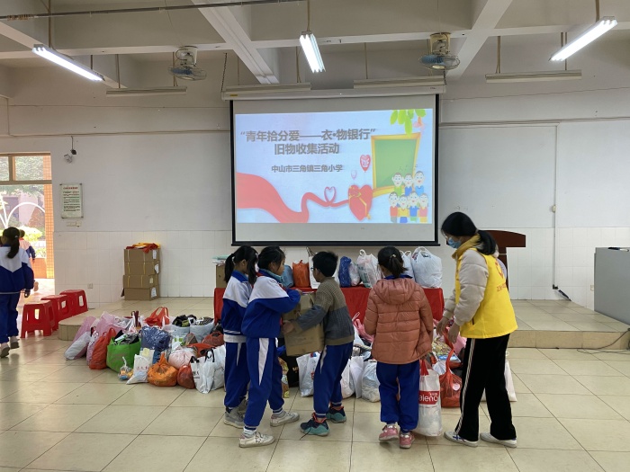 為積極響應(yīng)中山市少工委倡議,弘揚(yáng)愛心傳播精神,提高垃圾分類、舊物化寶的環(huán)保意識(shí)、生態(tài)意識(shí),引領(lǐng)廣大青少年做力所能及的環(huán)保行動(dòng),1月6日下午,三角小學(xué)組織開展“青年拾分愛——衣?物銀行”舊物收集活動(dòng),為困難人群送上溫暖的問候。