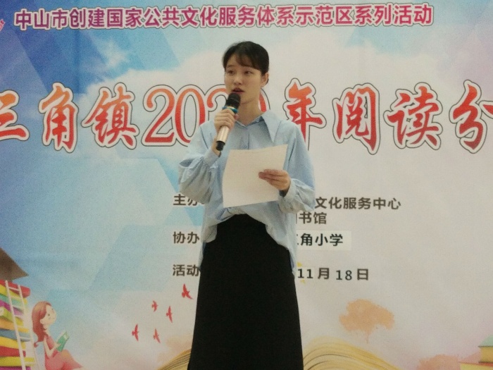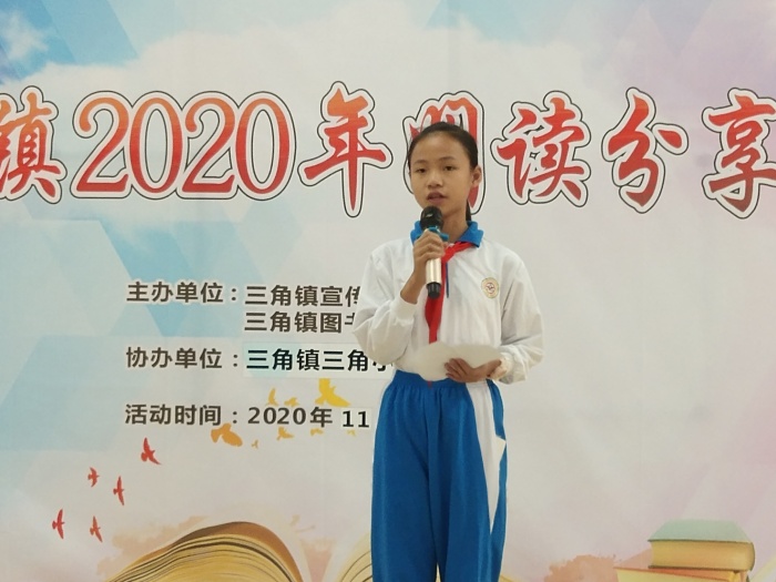 為創(chuàng)建國家公共文化服務體系示范區(qū),深入實施素質(zhì)教育,創(chuàng)建良好校園文化,營造濃郁讀書氛圍,由三角鎮(zhèn)宣傳文化服務中心、三角鎮(zhèn)圖書館主辦,三角鎮(zhèn)三角小學協(xié)辦的主題為“書香伴我成長”悅讀分享活動,于2020年11月18日下午兩點在三角小學階梯教室舉行。本次活動由少先隊大隊輔導員廖樂詩老師及六(3)班趙文熙同學主持。三角鎮(zhèn)圖書館館長林贊昌、三角小學王輝副校長、陳寶瑩主任、楊穗珊副主任以及三角小學部分師生參加了此次活動。