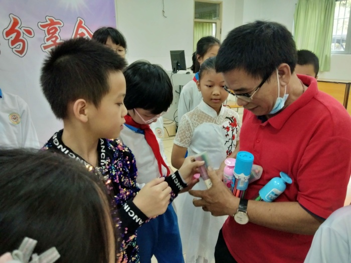 活動的最后,林贊昌館長和王輝副校長為參與活動的師生派發(fā)紀念品并合影留念。