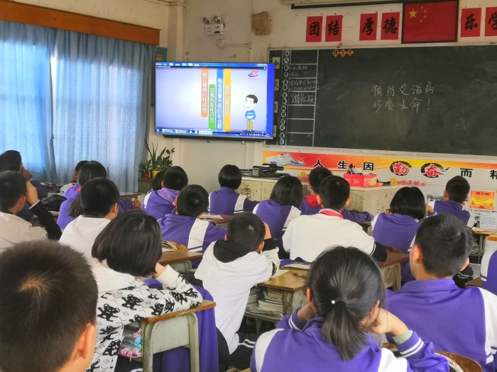 課堂上班主任為了引起學生對艾滋病的高度警惕,提高學生了解艾滋病的興趣,授課過程中還采取互動形式,著重講解了目前艾滋病流行現(xiàn)狀及嚴峻的疫情防控概況、社會影響等知識,并詳細介紹了青少年學生感染艾滋病高危風險因素及艾滋病預防的主要做法。