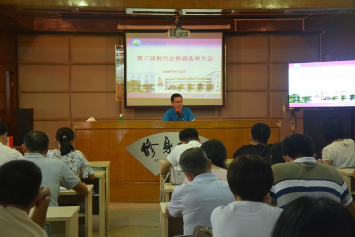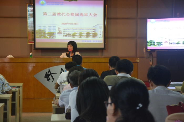 在清點(diǎn)完參會(huì)人數(shù)后,學(xué)校支部書記、校長梁炳華帶領(lǐng)全體教師學(xué)習(xí)了《中山市沙欄中學(xué)第三屆教代會(huì)換屆選舉方案》;并對(duì)中秋、國慶假期校園的安全工作做了強(qiáng)調(diào)。