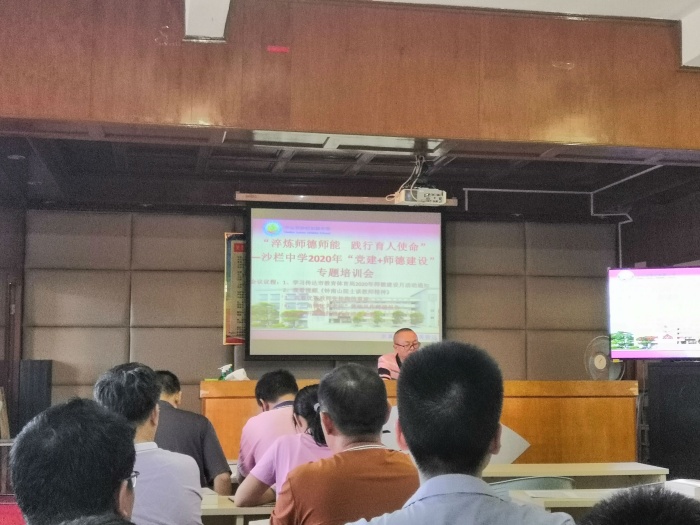 為加強(qiáng)師德師風(fēng)建設(shè),錘煉一支師德高尚、素質(zhì)過(guò)硬的教師隊(duì)伍。 9月16日下午,沙欄中學(xué)全體教師在和美樓舉行了“黨建+師德建設(shè)”專題培訓(xùn)會(huì)。會(huì)議由德育處張成斌主任主持。