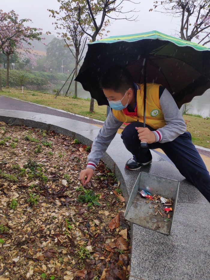 活動由學校德育處和團委聯(lián)合策劃,主要從初一年級選取勞動課班級學生,在初二初三選取活動課班級學生,到金鯉山黨建主題公園進行衛(wèi)生死角清理服務和環(huán)保宣傳活動。當天上午,學生志愿者們在黨員教師志愿者的帶領(lǐng)下,拿著清潔工具,冒著蒙蒙細雨,列隊來到金鯉山黨建主題公園。志愿者們不顧雨天路滑泥濘,積極投入衛(wèi)生清理工作,將周邊的路段,草坪、公共設施等進行了認真而細致的清理,撿起每一片紙屑,掃起每一片落葉,不放過任何一處衛(wèi)生死角。經(jīng)過志愿者們一個多小時的辛勤努力,金鯉山公園及周邊的環(huán)境得到了極大的改善。