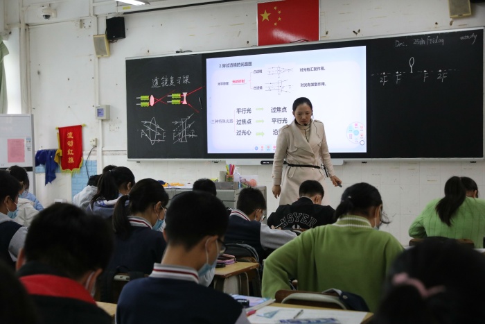 本次活動(dòng)共兩個(gè)流程。首先是上課環(huán)節(jié),由三角中學(xué)侯海南老師和工作室的老師分別上一節(jié)物理課,課堂上,兩位老師呈現(xiàn)了各自的優(yōu)勢(shì),課堂生動(dòng)活潑,妙趣橫生。侯老師的復(fù)習(xí)課例《透鏡和凸透鏡成像規(guī)律》,準(zhǔn)備充分,課件制作精美,教師善于用舊知識(shí)帶出新思考,注重技能訓(xùn)練,把復(fù)習(xí)課上得扎實(shí)、踏實(shí)。來(lái)自李楊威名師工作室的江裕芬老師帶來(lái)了課例《透鏡復(fù)習(xí)課》,課堂中,江老師把理論講解得深入淺出,運(yùn)用了先進(jìn)的教學(xué)儀器,生動(dòng)地演示了透鏡的工作原理,引人入勝。隨后是評(píng)課、交流環(huán)節(jié)。首先由三角中學(xué)物理科組長(zhǎng)李艷梅老師進(jìn)行總結(jié)發(fā)言,李艷梅老師就科組建設(shè)這一主題,暢談對(duì)物理學(xué)科建設(shè)以及科組建設(shè)的經(jīng)驗(yàn)和教訓(xùn)。接著,由李楊威副校長(zhǎng)發(fā)言,他首先十分感謝三角中學(xué)為這次的交流活動(dòng)提供了平臺(tái),并對(duì)兩節(jié)課例進(jìn)行評(píng)課,還就科組的建設(shè)方面的先進(jìn)做法做了經(jīng)驗(yàn)介紹。最后,由工作室的成員陳智泉老師就中考的備考策略提出了自己的兩點(diǎn)做法:其一是注重對(duì)資源進(jìn)行整理,將教學(xué)資源“物化”成學(xué)案或試卷;其二是在備考時(shí),要研究試題,緊跟中考命題的趨勢(shì),準(zhǔn)確領(lǐng)悟中考題注重情景化的特點(diǎn),教會(huì)學(xué)生調(diào)用知識(shí)點(diǎn)能力,避免死記硬背。