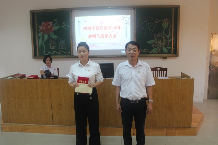 王校長在會上公布了學校獲得市、鎮(zhèn)、校三級優(yōu)秀教師的名單,后校長為這些老師頒發(fā)了榮譽證書。孫主任作為優(yōu)秀教師的代表發(fā)表演講。她勉勵大家用靈動的智慧引導學生,用高尚的人格感染學生,用文明的禮儀影響學生,用博大的胸懷愛護學生,爭取多出成績,出好成績,譜寫四海學校更加輝煌的明天!