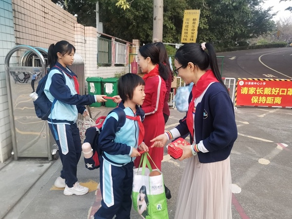 一年好景,最美春光,此時繁花已在枝頭綻放,滿園春色已充滿校園。在這春和景明之時,迎來沙溪鎮(zhèn)中心小學(xué)學(xué)子歸來,為了開啟孩子們的新航程,中心小學(xué)全體行政在新任的華峻校長帶領(lǐng)下,一早列候于校門兩旁,歡迎同學(xué)們回家的同時,還給每一位同學(xué)送一個“紅包”,紅包里放著一張集“?!被顒尤蝿?wù)單。一個小小的紅包,一下子就讓還在回味寒假的孩子們有了“回家”的感覺,每一個孩子臉上蕩漾著開心的笑容。
