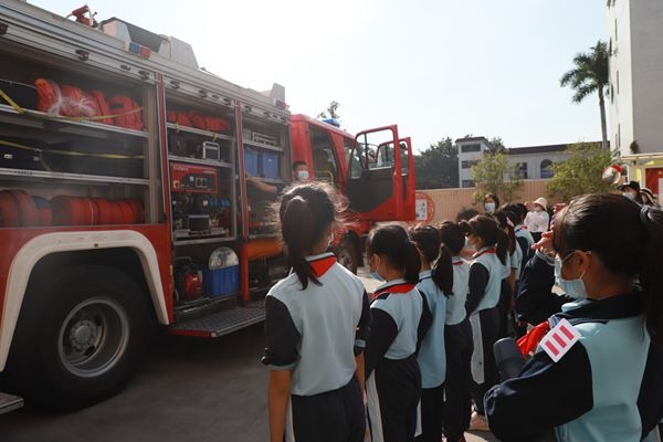 防火安全,人人有責,為了提高隊員們的消防意識,增強自我保護能力,讓隊員們進一步了解消防知識,體驗消防士兵工作,結合119消防安全宣傳日,11月9日下午2:30,由沙溪鎮(zhèn)中心小學劉桂香副校長、大隊輔導員伍煜獻老師帶隊,組織領袖團四年級中隊以預備隊員參加沙溪鎮(zhèn)消防大隊進行研學活動。