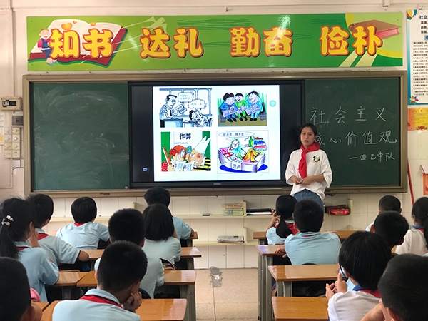為弘揚(yáng)社會(huì)主義核心價(jià)值觀,讓學(xué)生進(jìn)一步領(lǐng)會(huì)價(jià)值觀的重要性和深刻內(nèi)涵,7月3日下午,沙溪鎮(zhèn)濠涌小學(xué)各中隊(duì)開(kāi)展了“樹(shù)立社會(huì)主義核心價(jià)值觀”主題隊(duì)活動(dòng)。