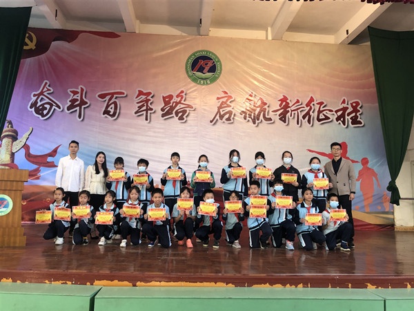 最后,由高主任宣讀上學(xué)期在省、市、鎮(zhèn)各項學(xué)科比賽獲獎的老師、學(xué)生,樂群村黨總支部副書記繆溢汞為獲獎老師頒獎。樂群村黨總支委員、村委會副主任梁錦榮,黨總支委員兼村委委員楊亮途和黨總支委員梁夢曉、樂群小學(xué)李荊校長和梁君豪主任分別為獲獎學(xué)生頒獎。獲獎同學(xué)排著整齊的隊伍,上臺拍照留念,手捧獎狀,個個笑逐顏開。同時,高主任鼓勵同學(xué)們,在新的學(xué)期不斷拼搏,不斷努力,爭取優(yōu)異的成績。