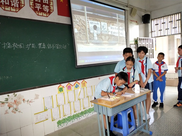 下午,各中隊開展了以“抵制毒品,參與禁毒”為主題的班會活動。各中隊輔導(dǎo)員老師活動前認(rèn)真?zhèn)湔n,精心制作課件。在課堂上,從毒品的特征和種類、毒品對人類尤其是青少年的危害,抵御毒品侵害的措施等方面,詳細(xì)地介紹了有關(guān)禁毒方面的知識,通過一個個案例讓隊員們了解毒品的危害,教育隊員們珍惜生命,遠(yuǎn)離毒品,從而增強(qiáng)防毒、拒毒意識。同時學(xué)校大隊部將禁毒教育內(nèi)容同法制教育結(jié)合起來,加深隊員們對毒品危害性的認(rèn)識,倡導(dǎo)健康文明的生活方式。最后,各班中隊輔導(dǎo)員和隊員們簽署綠色書簽活動,一起抵制有害出版物和信息的侵染,提高安全意識,防治網(wǎng)絡(luò)詐騙和欺凌事件的發(fā)生。