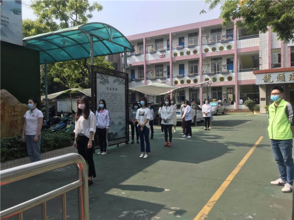 為有效落實(shí)《中山市教體局應(yīng)對(duì)新冠肺炎疫情做好開學(xué)工作指導(dǎo)意見》文件要求,做實(shí)做細(xì)學(xué)校疫情防控和開學(xué)前各項(xiàng)準(zhǔn)備工作,檢驗(yàn)學(xué)校疫情防控工作方案的科學(xué)性和可操作性,切實(shí)保障學(xué)校師生的安全。4月15日下午3點(diǎn),沙溪鎮(zhèn)龍頭環(huán)學(xué)校開展疫情防控模擬開學(xué)演練活動(dòng)。學(xué)校疫情防控工作領(lǐng)導(dǎo)小組全體成員及全校教師參與本次演練,沙溪鎮(zhèn)教辦領(lǐng)導(dǎo)及13所中小學(xué)校長(zhǎng)及代表蒞臨學(xué)校觀摩指導(dǎo)。