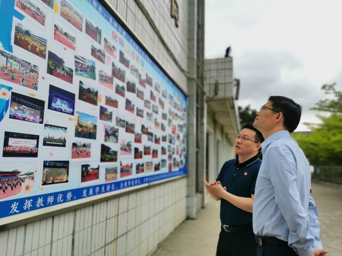 康樂小學(xué)吳偉標(biāo)校長向徐書記分別匯報(bào)了學(xué)校基本情況,辦學(xué)特色和成效,下一階段的主要工作思路以及學(xué)校所碰到的困難等,徐書記邊聽取匯報(bào)、邊詢問交流、邊巡查校園。當(dāng)徐書記了解到康樂小學(xué)注重常態(tài)管理,注重發(fā)揮師生優(yōu)勢(shì),注重微改造優(yōu)化校園,注重開展豐富多彩的師生活動(dòng),并獲得教育部頒發(fā)的“全國籃球特色學(xué)校”時(shí),非??隙▽W(xué)校的辦學(xué)成效和用心管理。