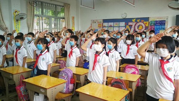 在疫情防控的特殊時(shí)期,學(xué)校扎實(shí)開展疫情防控教育,推進(jìn)抗疫精神進(jìn)課堂,組織學(xué)生在室內(nèi)舉行復(fù)學(xué)儀式,當(dāng)國歌、校歌的旋律再次響起,整個(gè)校園又充滿了活力,只見教室里所有同學(xué)紛紛起立,目光熾熱地注視著前方的五星紅旗,鏗鏘有力地唱響了嘹亮的國歌,余聲在校園上空回蕩著,表達(dá)了學(xué)子們對祖國的熱愛。莊嚴(yán)的升旗儀式后,學(xué)生代表區(qū)雅茜跟全體同學(xué)談了自己如何調(diào)整狀態(tài)適應(yīng)校園生活和學(xué)習(xí)的方法,倡議同學(xué)們珍惜這來之不易的入學(xué)機(jī)會(huì),爭取在學(xué)習(xí)上更上一層樓。接著,劉依婷校長為四到六年級學(xué)生作《開學(xué)第一課》主題講話,她強(qiáng)調(diào)疫情防控時(shí)期復(fù)學(xué),在校師生要嚴(yán)格遵守學(xué)校的各項(xiàng)防疫措施和流程,嚴(yán)格做好師生在校一日活動(dòng)常規(guī)。最后,各班班主任圍繞 “敬畏生命 熱愛生活”開展主題班會(huì),學(xué)習(xí)如何科學(xué)應(yīng)對疫情、如何保證生命健康等知識(shí),增強(qiáng)學(xué)生心理調(diào)適和關(guān)注心理健康意識(shí)、能力。