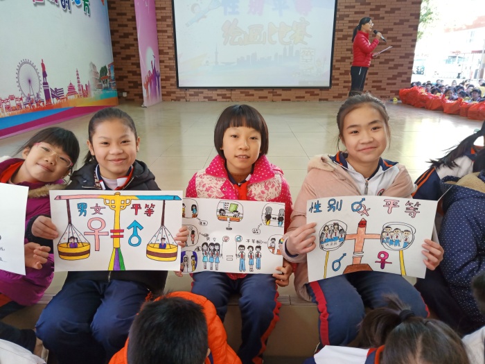 首先舉行的是“性別平等主題繪畫創(chuàng)作暨美術(shù)社團(tuán)成果展”活動(dòng)。每班選三名小畫家到美術(shù)室現(xiàn)場進(jìn)行“性別平等主題繪畫創(chuàng)作”,小畫家們畫得多認(rèn)真啊!