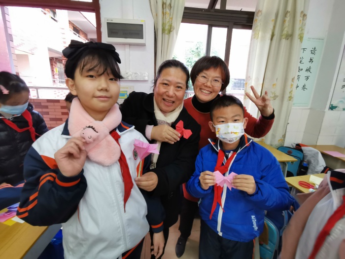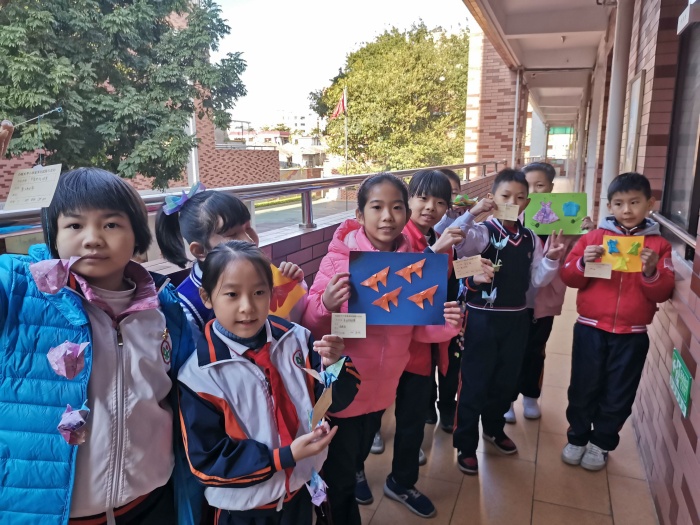 中年級(jí),舉行剪紙、折紙制作。“小腳丫”們手下的紙飛機(jī)、小紙船、千紙鶴等等惟妙惟肖!