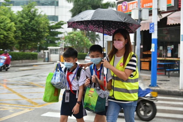 早上7:15分,學(xué)校行政、值日老師、家長(zhǎng)護(hù)衛(wèi)隊(duì)及蓮峰派出所警察叔叔們,早早地在校門口熱切地等候著返校的師生們。7:20分開始,學(xué)生有序地按學(xué)校錯(cuò)峰安排陸續(xù)返校,盡管隔著口罩,也能感受到同學(xué)們按奈不住的喜悅之情。在老師的引導(dǎo)下,同學(xué)們以1米間距排隊(duì),依次檢查復(fù)學(xué)碼和承諾書,通過體溫檢測(cè)等防疫步驟后才進(jìn)入校園,把好入校安全第一關(guān)。四至六年級(jí)273名學(xué)生,全都順利返校。