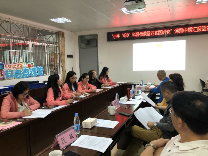 本次活動(dòng)由學(xué)校教學(xué)行政鄧雁櫻主任主持,分兩個(gè)環(huán)節(jié)進(jìn)行,一是在學(xué)校黨建活動(dòng)室進(jìn)行課題中期匯報(bào)交流研討,二是現(xiàn)場(chǎng)觀摩五場(chǎng)“430”科普微課堂活動(dòng)。