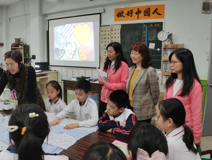 交流研討會(huì)結(jié)束后,陳再玲主任在課題組成員的帶領(lǐng)下,現(xiàn)場(chǎng)觀摩兩項(xiàng)課題研究成果展示櫥窗及五場(chǎng)“430”科普微課堂活動(dòng)。林焯有主任組織的“趣味實(shí)驗(yàn)”引領(lǐng)學(xué)生在實(shí)驗(yàn)中尋找科學(xué)原理,八名三(3)班的科普義工家長(zhǎng)在馬偉萍老師的組織下開(kāi)展“垃圾分類就是新時(shí)尚”宣傳體驗(yàn)活動(dòng),余秋蔚老師和陸麗瑜老師配合著中山市茶葉商會(huì)會(huì)長(zhǎng)林瑞龍先生開(kāi)展“身邊的中草藥之陳皮”講座和體驗(yàn)活動(dòng),莫晴雯老師和拼布布藝?yán)蠋煿o珊老師指導(dǎo)同學(xué)們開(kāi)展“小天裁大學(xué)問(wèn)”之“我要學(xué)織布”體驗(yàn)活動(dòng),蔡鈺煬老師的剪紙小徒弟們?cè)陉?yáng)光書(shū)屋耐心地指導(dǎo)一群小同學(xué)陶醉在“妙手生花”剪紙活動(dòng)中……