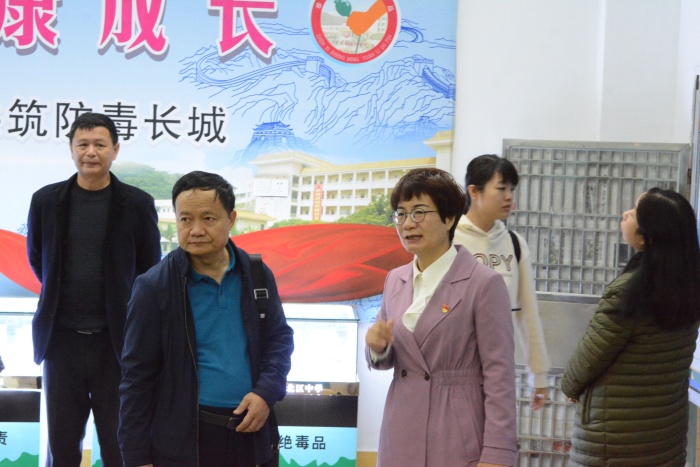 在趙翠顏校長的帶領(lǐng)下,來賓們參觀了北中校園,還認真聆聽了名師工作室、班主任工作室和禁毒基地等的介紹。